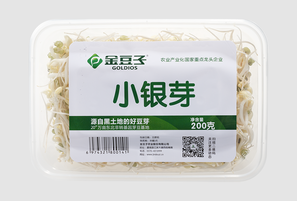 金豆子精包裝豆芽原料來(lái)自東北非轉(zhuǎn)基因黑土種植基地,經(jīng)過(guò)深井水噴淋,自動(dòng)化培育,低溫冷鏈運(yùn)輸?shù)竭_(dá)餐桌,采取全程溯源管控體系,確保豆芽的安全、健康、綠色。金豆子集團(tuán)以科技賦能品質(zhì),致力為消費(fèi)者提供安全、健康的芽苗菜,踐行“專注豆芽,服務(wù)民生”的企業(yè)使命