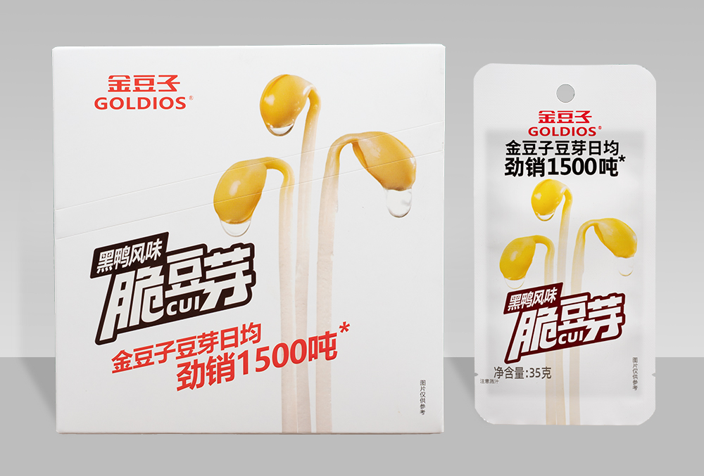 金豆子脆豆芽精選東北非轉基因大豆,采用全自動生產線及孵化車間培育,鎖住天然脆嫩口感。搭配秘制調味配方,呈現香辣、燒烤、山椒、黑鴨四種口味。金豆子,開啟豆芽類零食先河,食品不含防腐劑,小包裝便捷開袋即食,適合健身代餐、追劇零食或佐餐小菜,深受消費者喜愛