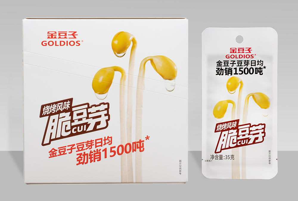 金豆子脆豆芽精選東北非轉基因大豆,采用全自動生產線及孵化車間培育,鎖住天然脆嫩口感。搭配秘制調味配方,呈現香辣、燒烤、山椒、黑鴨四種口味。金豆子,開啟豆芽類零食先河,食品不含防腐劑,小包裝便捷開袋即食,適合健身代餐、追劇零食或佐餐小菜,深受消費者喜愛